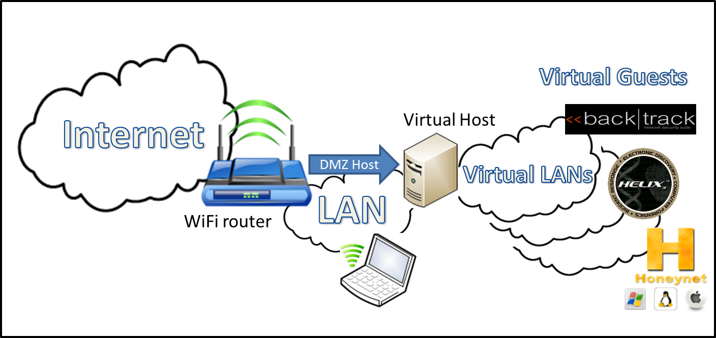4. En el router WiFi se configurará la IP del servidor (o de una máquina virtual en modo bridge, como veremos más adelante) a modo de DMZ Host. Es decir, todos los puertos de la IP pública de tu conexión se redirigen a la IP privada del DMZ Host.