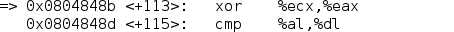 Con GDB no es necesario realizar todos los cálculos, sino únicamente con insertar un breakpoint en el punto en el que se realiza la XOR y ver qué hay almacenado en el registro %eax: